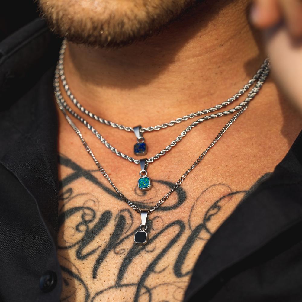 This chain is made from Recycled Stainless Steel. This chain will not tarnish, rust or turn your skin green. Safe to wear in water & is more durable than other materials commonly used such as Silver & Gold.