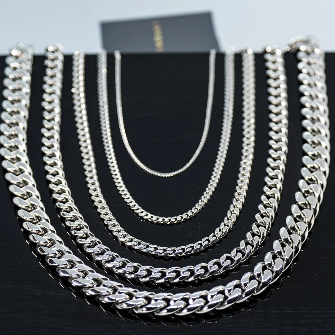 This chain is made from Recycled Stainless Steel (Surgical Grade 316L). This chain will not tarnish, rust or turn your skin green. Safe to wear in water & is more durable than other materials commonly used such as Silver & Gold.