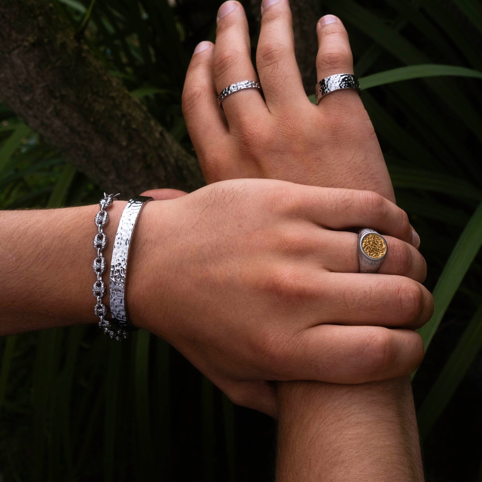 We use Recycled Stainless Steel, 925 Sterling Silver & Gold plating to craft our jewellery pieces.