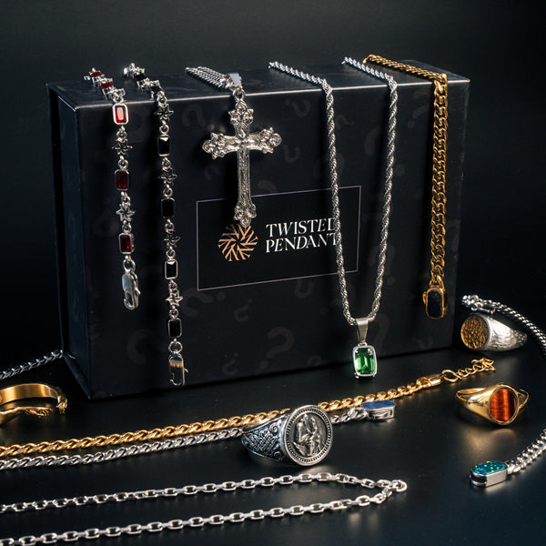 Discover the unexpected with our Mystery Box. Each box includes a surprise selection of our men’s jewellery. From rings, pendants, chains or bracelets. Every box is guaranteed to exceed its value.